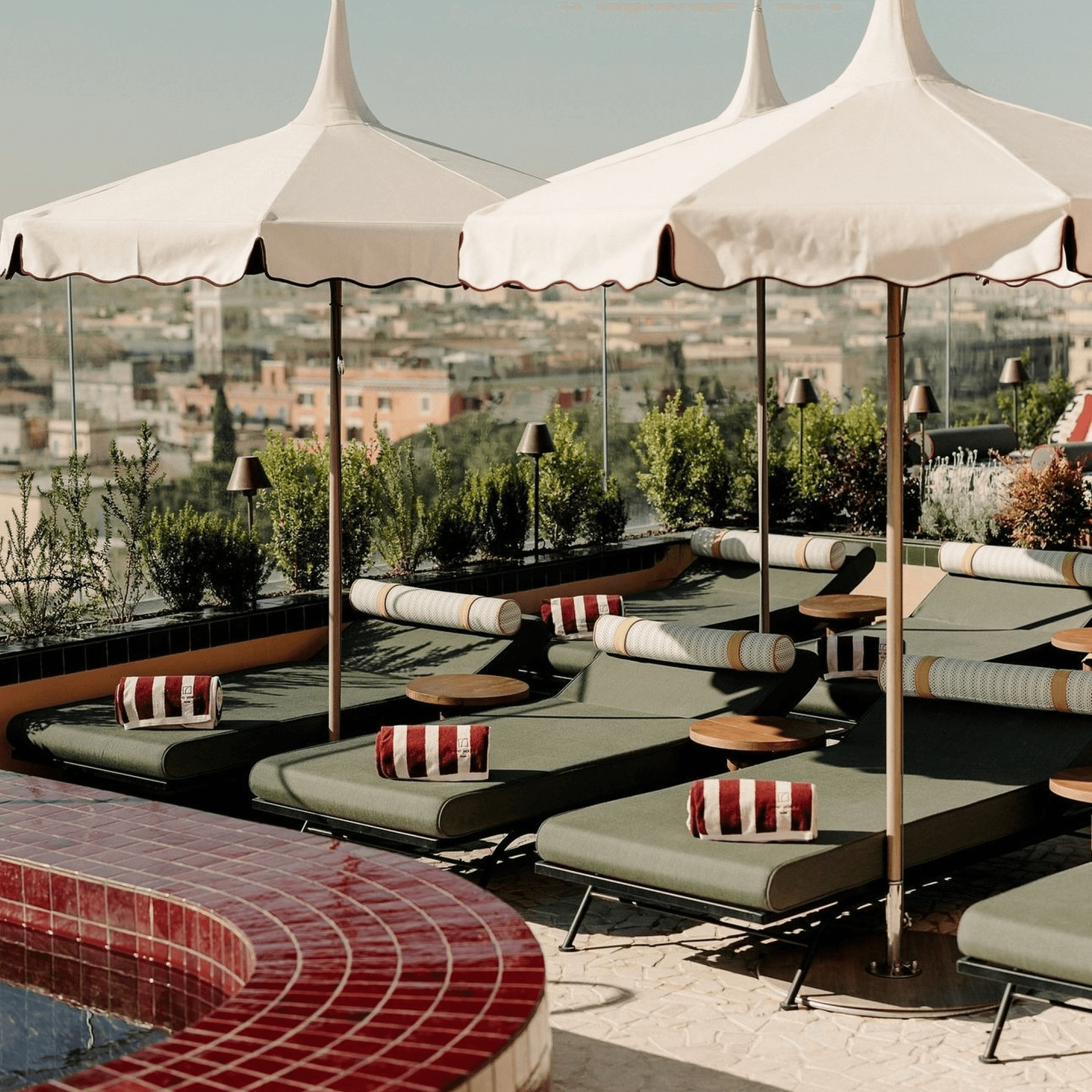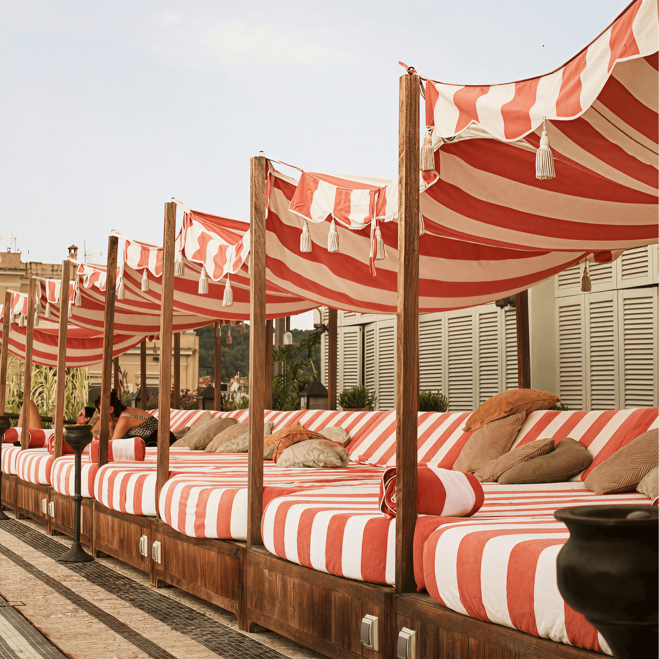 Inspired by the rooftop at Soho Beach House Rome, finished in the House's signature burgundy and cream stripe.