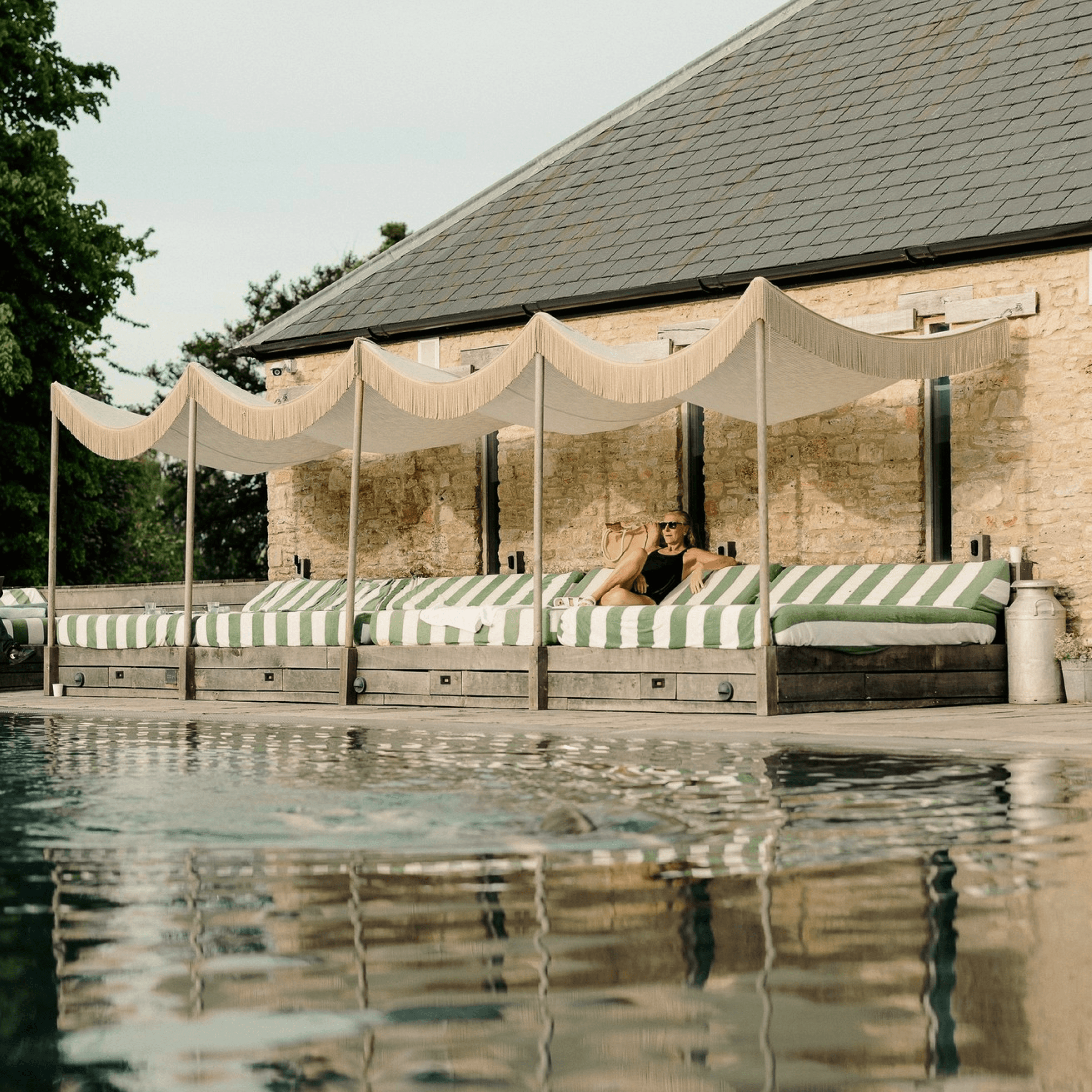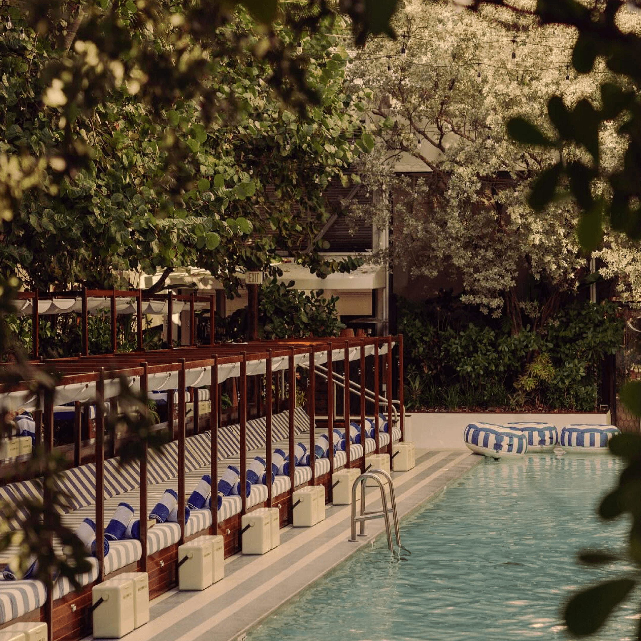Inspired by the iconic pool at Soho Beach House Miami, finished in the House's signature navy and white stripe.