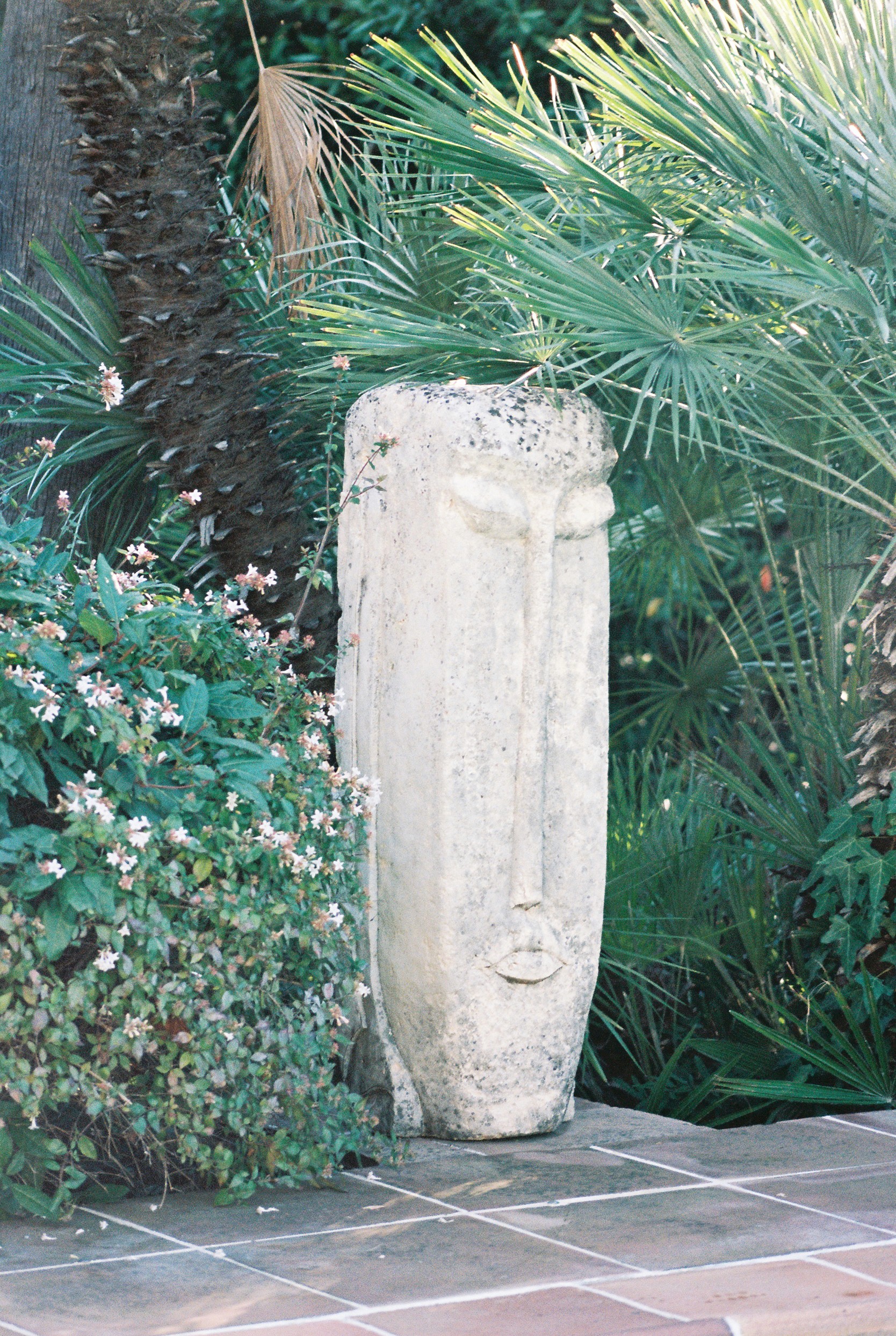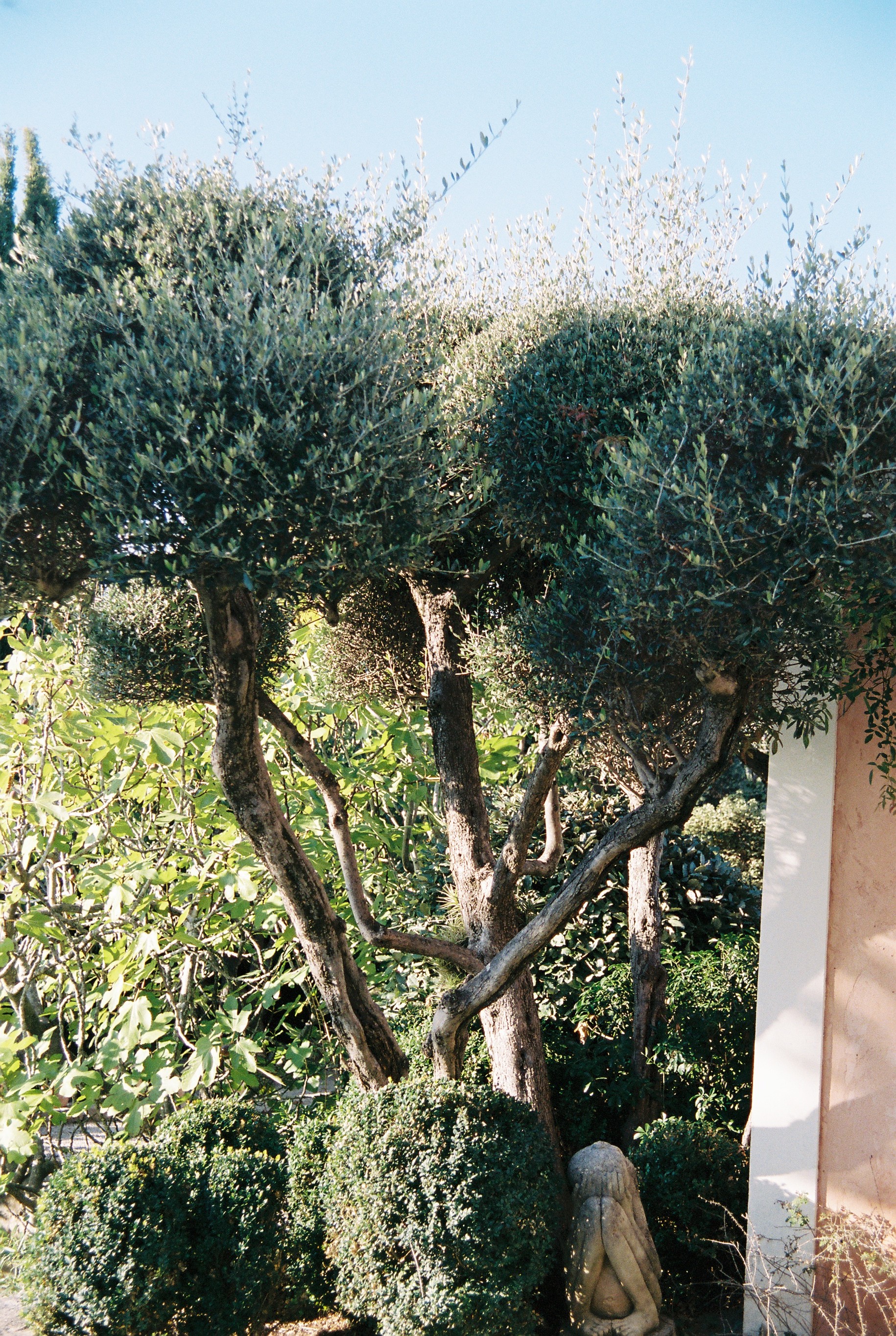 The garden, surrounded by terracotta tiles and framed with grass, supports flora which has no ties to the region: mirabelle plums, wild strawberries and watermelons thrive amongst olive and lemon trees.