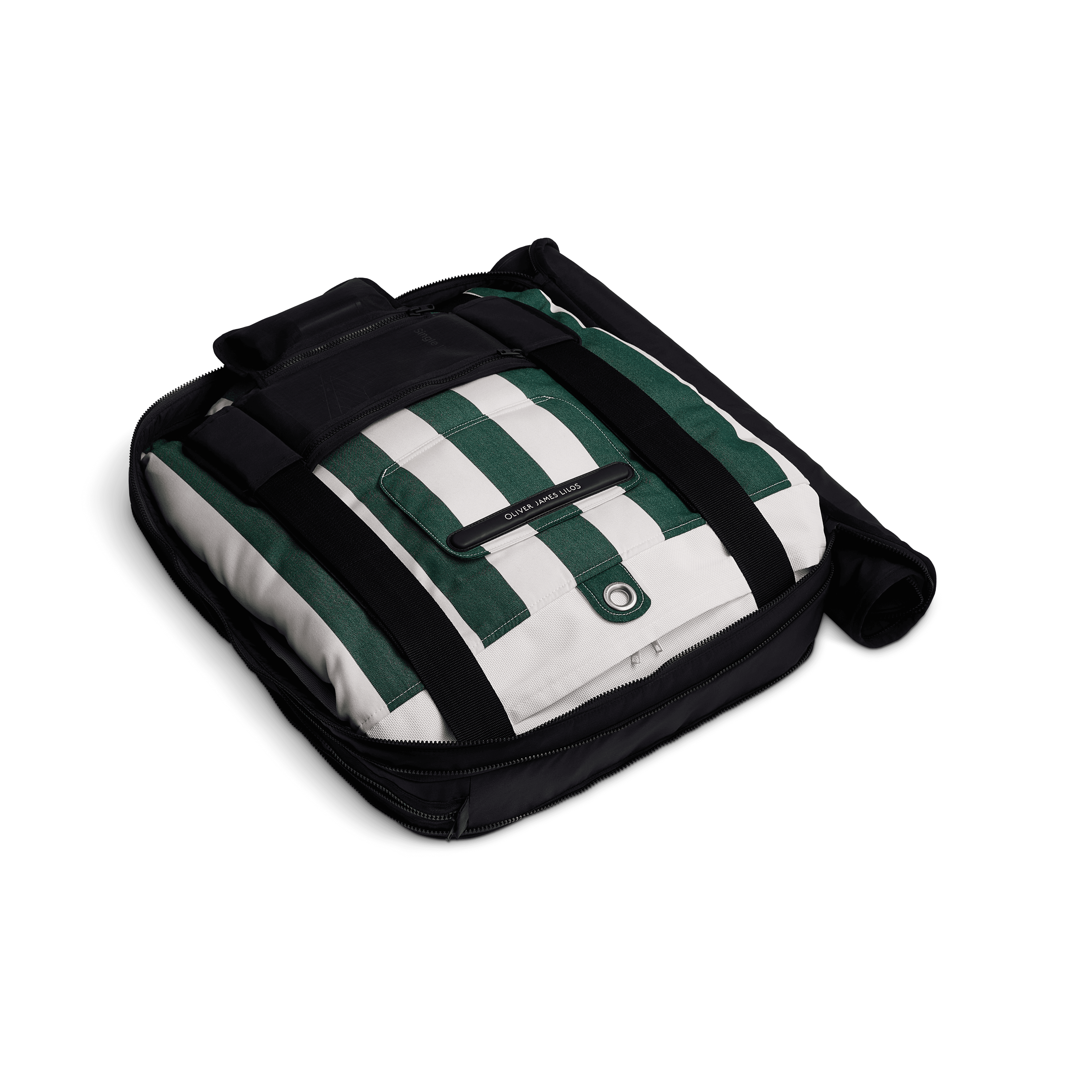 Made with Botella, a green and white striped canvas weave from Agora®.