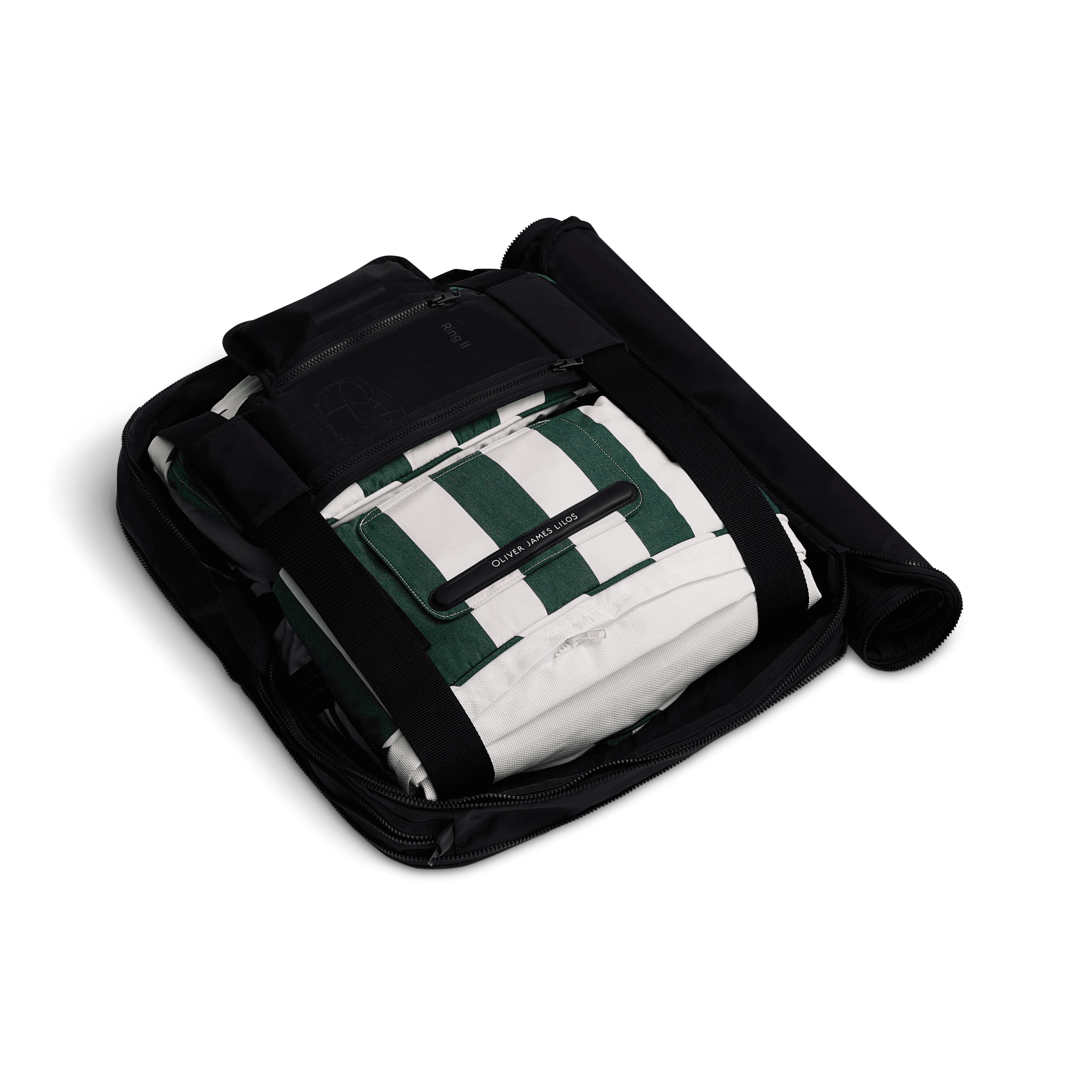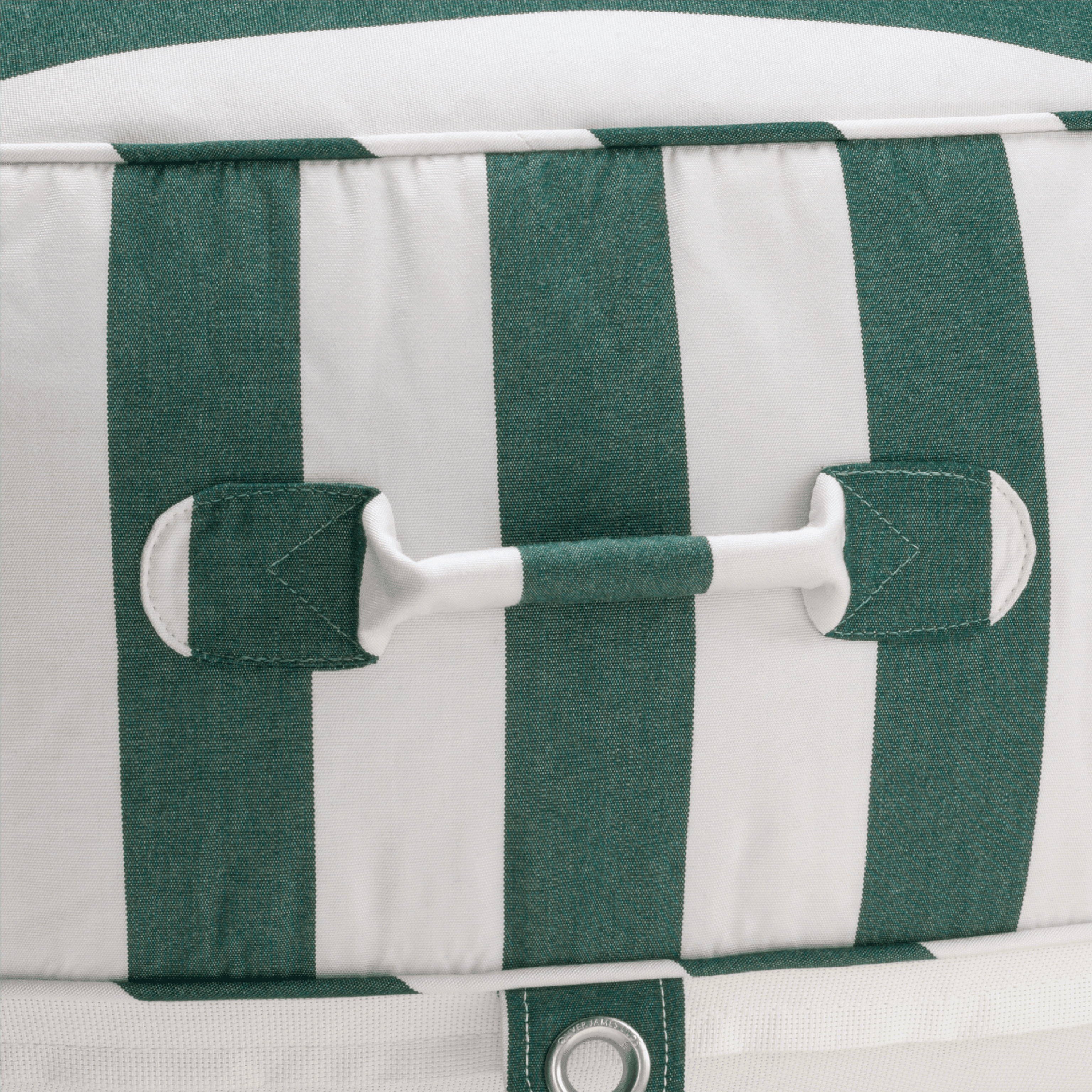 Made with Botella, a green and white striped canvas weave from Agora®.