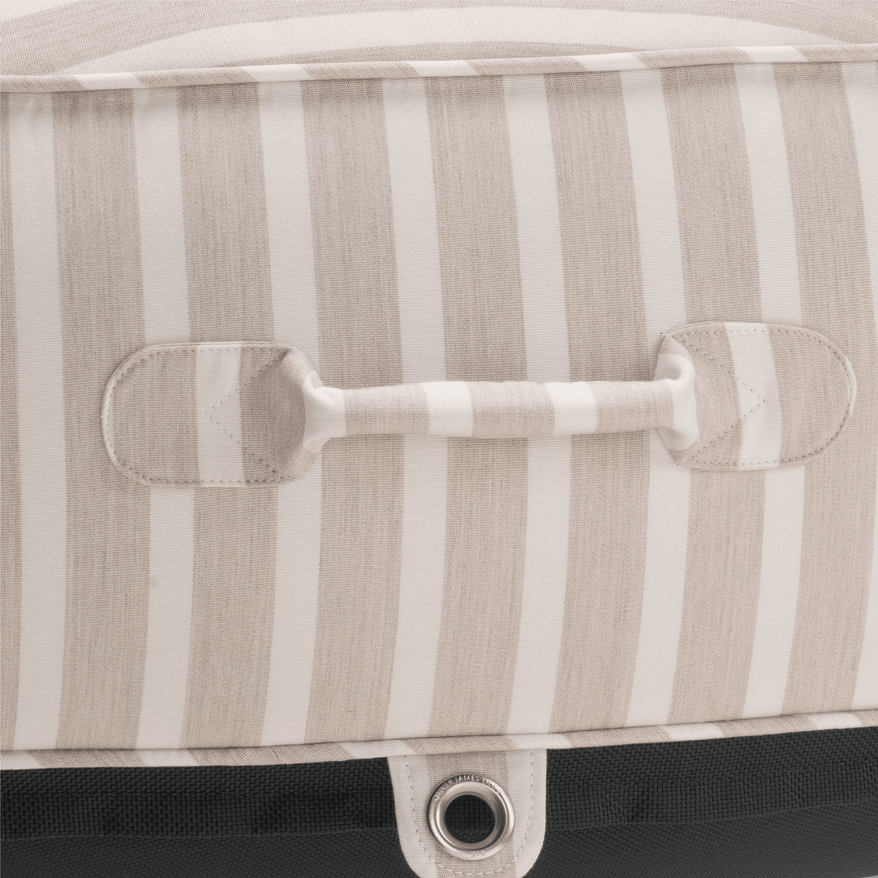 Made with Linen, a beige and white striped canvas weave from Sunbrella®.