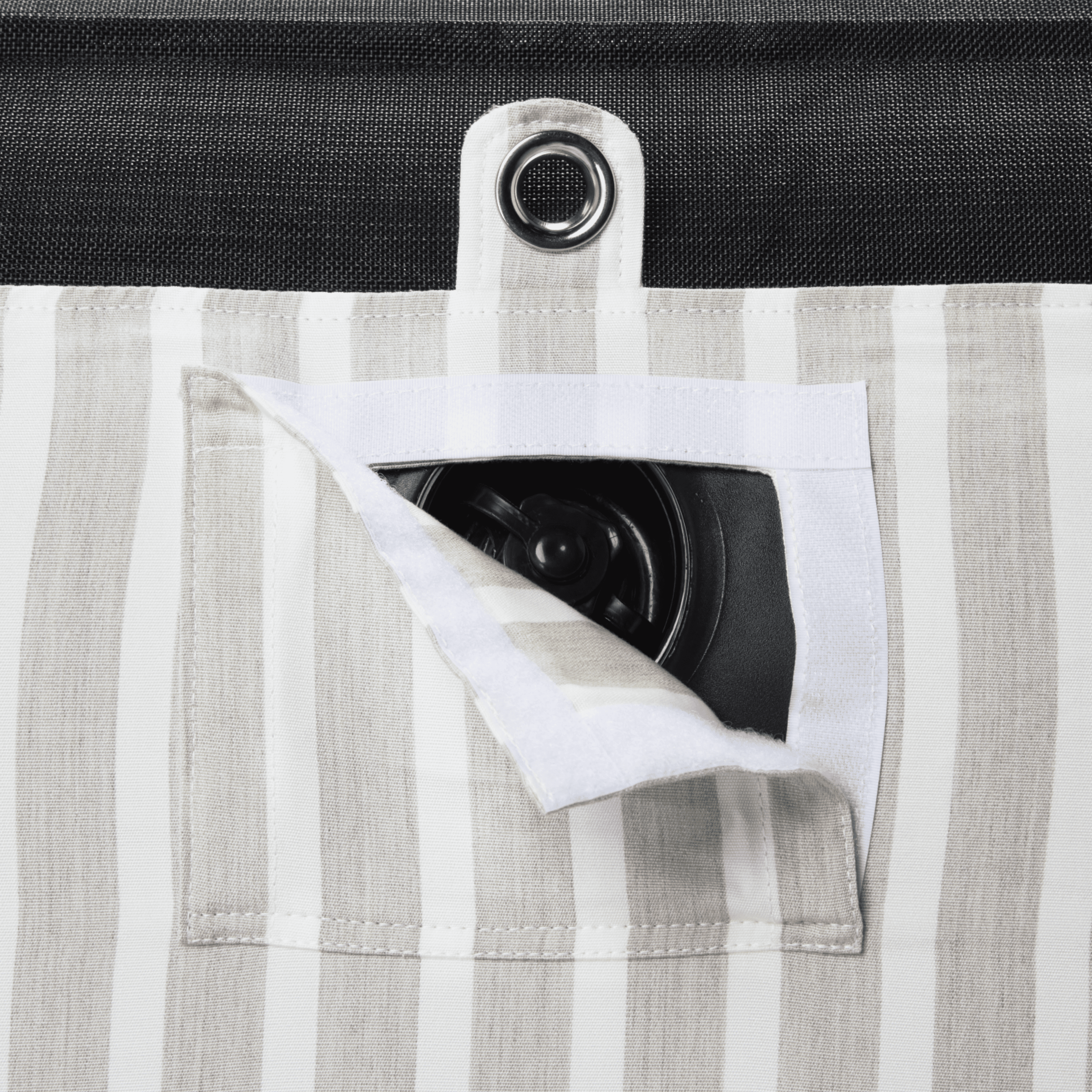 Made with Linen, a beige and white striped canvas weave from Sunbrella®.
